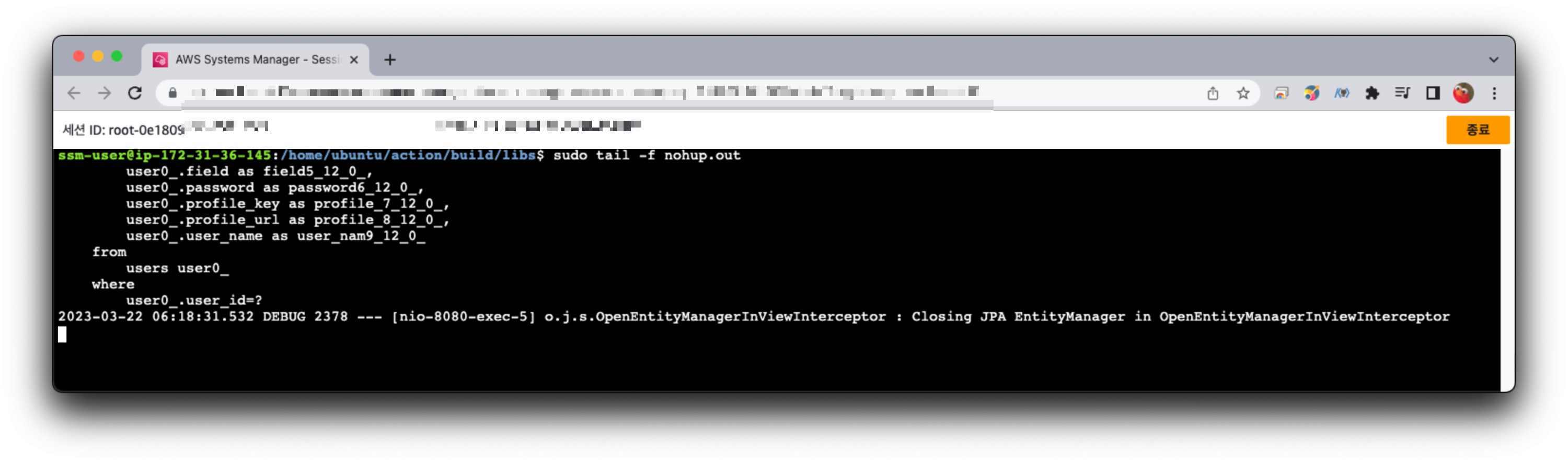 일단 서버에서 무슨 문제가 생겼는지 알아보기 위해 EC2 내 로그 파일을 확인하기로 했다